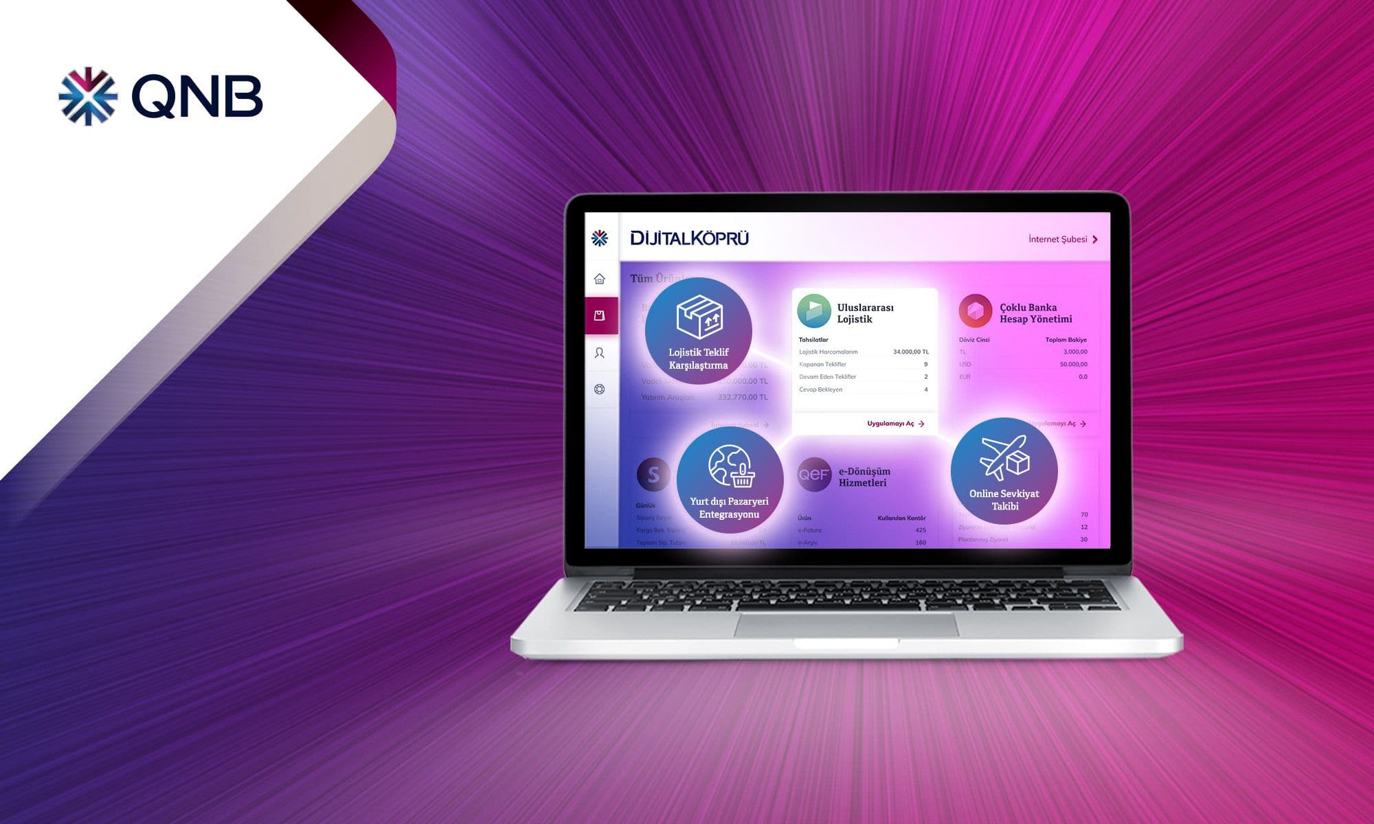QNB Dijital Köprü ile Navlungo’yu kullanarak zaman ve maliyetten tasarruf edin. Yüzlerce lojistik firmasını karşılaştırın, size uygun olan taşıma yöntemini seçin. Seçtiğiniz firmadan taşıma hizmeti alın.